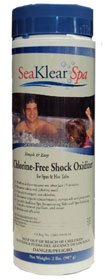 SeaKlear Chlorine Free Spa Shock is a Potassium Peroxymonosulfate based product that is proven to keep spa water clear and odor free. This product is an oxygen-based oxidizer that reacts with organic waste. It breaks down organic waste that can lead to the formation of chloramines. Chloramines cause cloudy water and odors. Chlorine Free Shock is a great alternative to shocking with chlorine, which can affect pH levels.
